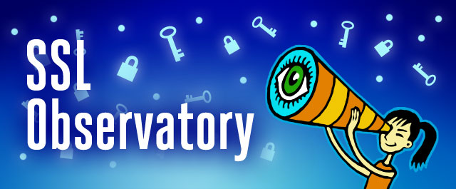 The EFF SSL Observatory is a project to investigate the certificates used to secure all of the sites encrypted with HTTPS on the Web. We have downloaded datasets of all of the publicly-visible SSL certificates on the IPv4 Internet, in order to search for vulnerabilities, document the practices of Certificate Authorities, and aid researchers interested in the web's encryption infrastructure.
